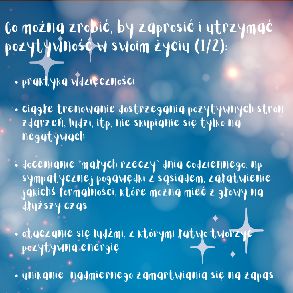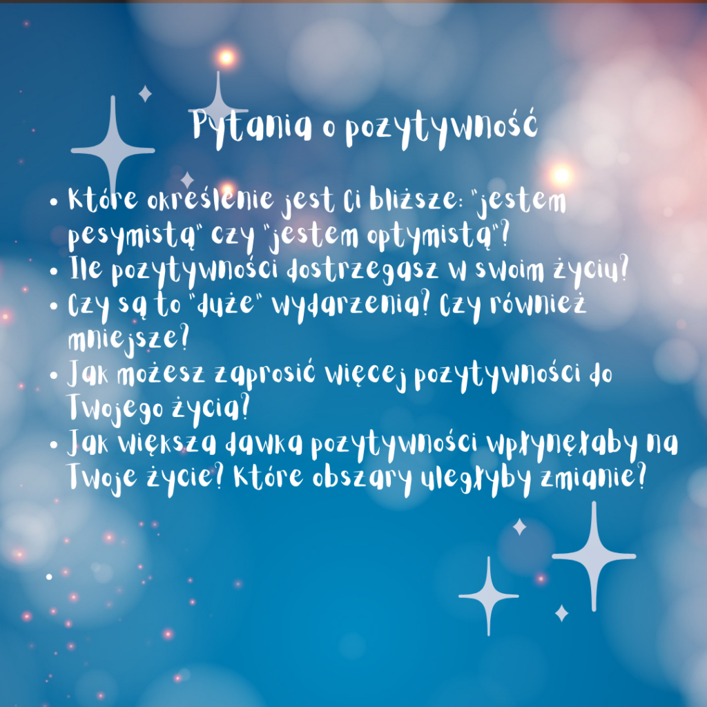 Zachęcam również do znalezienia odpowiedzi na poniższe pytania z obszaru pozytywności w życiu.
